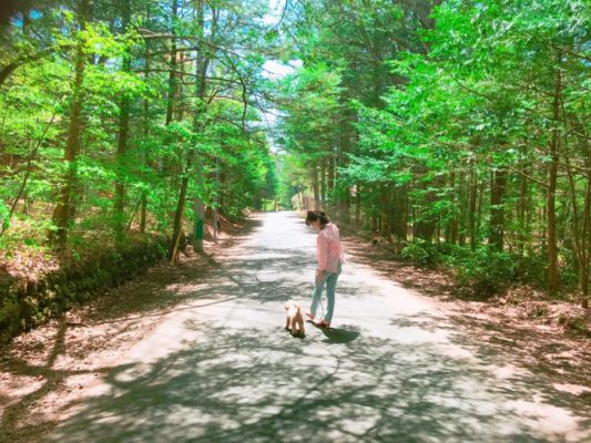 軽井沢随一の観光スポット・ハルニレテラスでは平日でも「満車」の看板が立つようになりました。 いよいよ迎えたハイシーズン。軽井沢町も賑やかに、華やいできましたね。 人が増えたなぁと感じると同時に、目立つのがワンちゃんの姿で