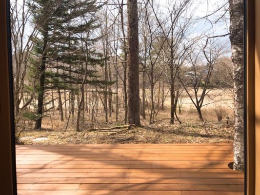 晴天続きの軽井沢。今日の昼間は20度を超え、汗ばむ陽気でした。 こんな日は、森の中の別荘地で、木陰のテラスでのんびり過ごしたい・・・まさにそんな贅沢の叶うリノベーション物件が、先日引き渡しとなりました。 当ブログでも“ニ