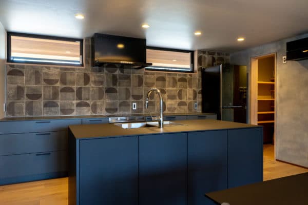 元々採光が少なく、動線も使い勝手の悪かった別荘。 それらを改善するため、間取り変更から行い、リノベーションをしました。 廊下にリビングからの光が入るよう、廊下とキッチンの間の壁に縦のスリットを