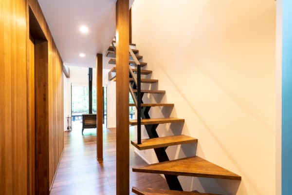 デザイン性の高さなどから、人気を集めている『スケルトン階段』。 「蹴込み板」(階段で足の乗る踏板と踏板の間の垂直部分に立てた板)が無く、 骨組みの部分が見える形状の階段のことを指します。 『オープン階段』『シースルー階段
