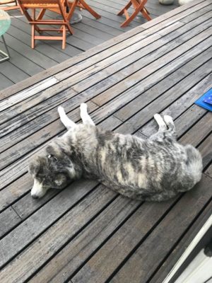 暑いのが苦手な、ベストプランニングの山﨑です。 我が家の愛犬も暑いのが苦手。 私の仕事中は事務所のデッキに居させてもらっているのですが、 保護色のようにデッキと同化(笑) ・・・だったのですが