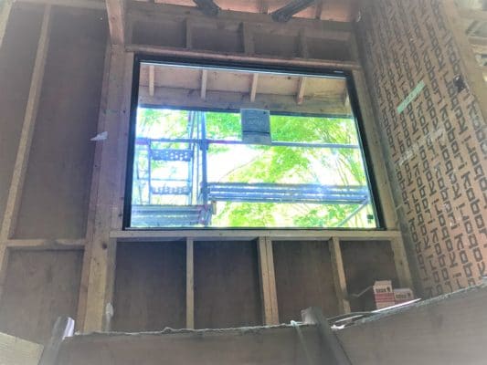 解体が終わった後の現場。 4月に入った軽井沢はまだ肌寒い日が続いていましたが晴天に恵まれ良い工事日和。 増築部分のコンクリート打設を行いました。 続いて、玄関収納にもサッシの取り付けを行いました。 大きなFIX窓を玄関に