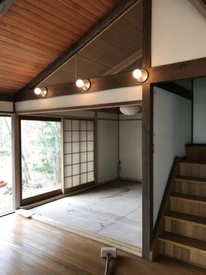 解体、屋根葺き替えが終わり、新緑の軽井沢らしい気候になってきた4月中盤に『苔庭の家』は木工事を行っていました。 その時の様子をリポートします。 内装工事の下地作りとして、大工さん大活躍です。 断熱材も入り、窓も入りました