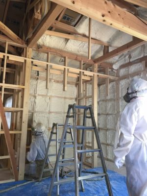 吹き付け断熱の場合は、現場に専門業者の方が来て施工を行ってくれます。