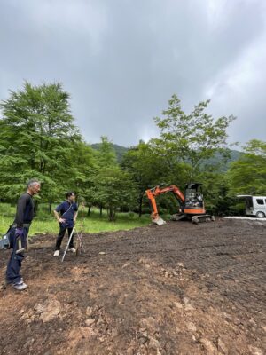 住宅の要は文字通りの「基礎工事」基礎って大事です! 先日スタートした新築工事。 先ずは社内スタッフとミリ単位での測量です。 建物の位置、角度、基準となる高さなどの位置出しをしています。 写真にありますが、「木杭」の上にさ