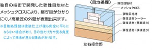 コテ塗り調のサイディングを使用するとどうしてもサイディングと サイディングの継ぎ目が気になってしまいます。 その継ぎ目を目立ちにくくしたのが 東レ「完壁ピクチャーウォール」の 塗り壁下地工法です。 東レ独自の技術で開発した弾性目地材とメッシュクロスにより継ぎ目が 目立ちにくい...