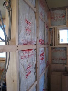 当社では断熱材は100ミリ入れ断熱性能を上げ軽井沢の寒さ対策をしています。 外壁との間はもちろんですが 写真のように仕切った室内の壁にも断熱材を入れています。軽井沢事務所は築30年以上の建物です。 その当時の建物は断熱性能に関しては全くありませんでしたので 今...