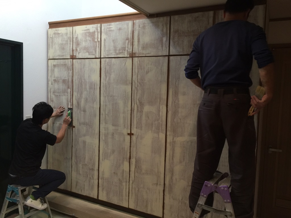 まずは元の木製建具にプライマーを塗り、しっかり下地処理をし、