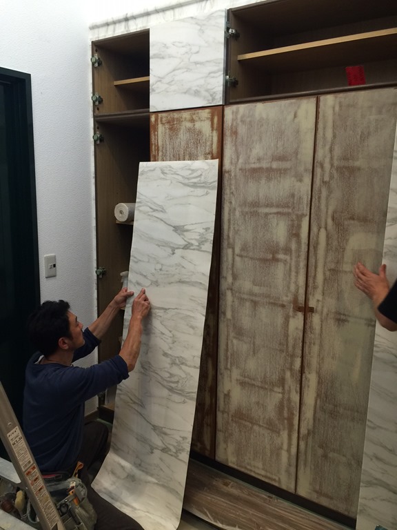 今回は、イメージチェンジをするために石目調の柄を貼りました。