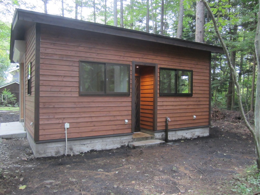外壁は、地元産のカラマツを使用し、周りの景観によくなじんだ軽井沢らしい建物になりました!