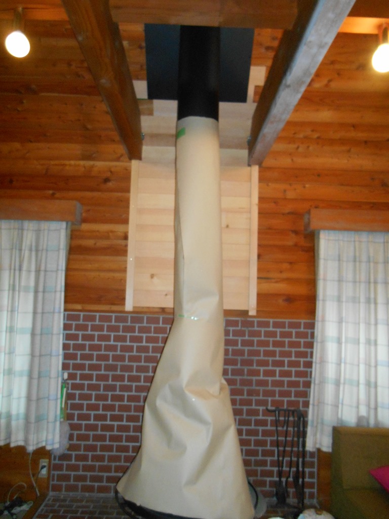 煙突の天井仕切り板の下から雨水が漏れていました。