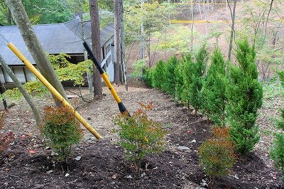 やんわりと境界線へ ヒバを植栽しました。