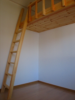 寝室にはクローゼットと造付けの棚を付け収納力UP お子様の部屋はロフトを設けて部屋を広く使えるように設計しました。