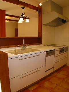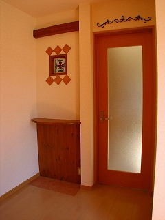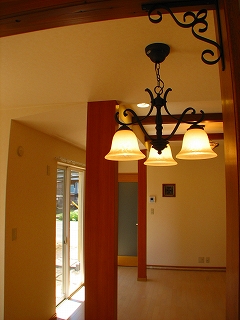アイアンの飾りや照明 お客様をお迎えする玄関のPointとなるステンドグラス キッチンの床にはテラコッタタイル と奥様のご希望もたくさん詰まったお家が完成しました。