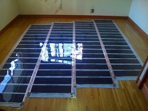 床暖の上から床暖対応のフローリングを張上げ