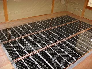 (洋室の床暖施工状況) (和室床暖施工状況)