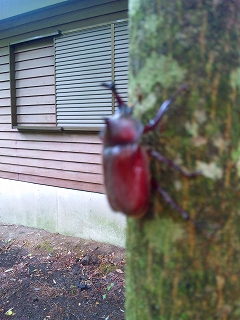 こちらの別荘の敷地内にカブトムシがいましたよ。(ピンボケですみません)
