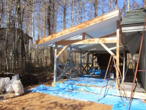 デッキの半分までしか屋根がなく、デッキが痛み、デッキ全体に屋根を