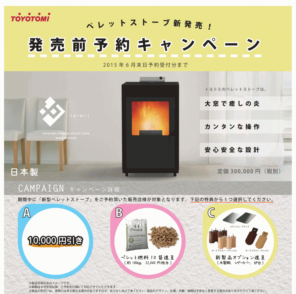 豊臣工業株式会社より、今年の夏新たな国産ペレットストーブが発売します!