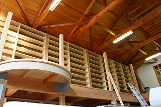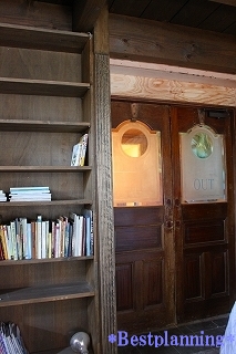 作り付けで 造作した本棚もいい味わいに色が塗りあがっています。