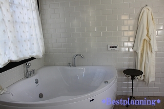 そして映画に出てきそうなバスルーム。タイル張りの壁 床は床暖が施工されているので