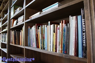 珍しい洋書がたくさんあり この本棚の雰囲気を更に上げています。