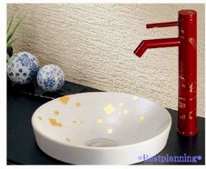 信楽焼きのボール 金箔が施された物 水栓が漆で塗られた物など珍しい水栓 ボールの取り扱いがあります。