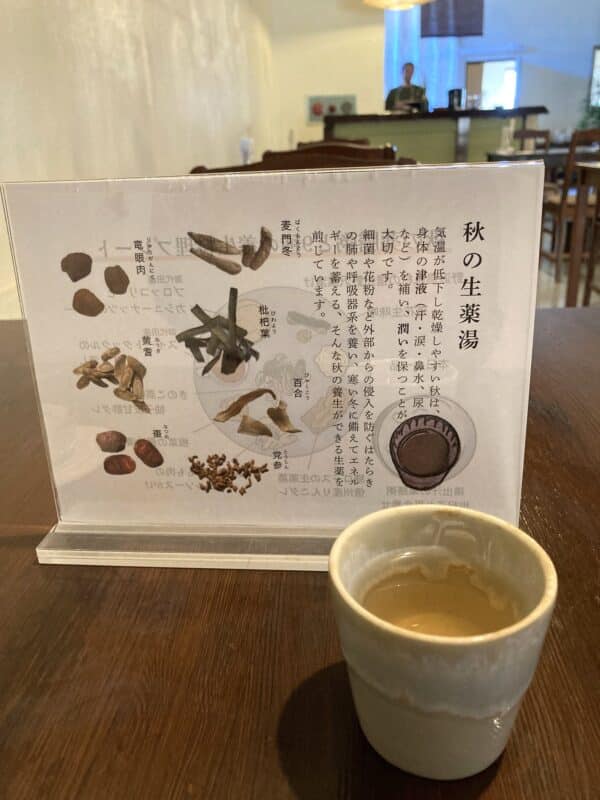お料理の前に出していただいた生薬湯も、少しとろっとした舌ざわりと仄かな甘みで体が潤う感覚。