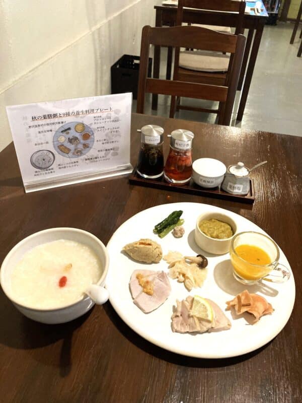 薬膳粥と9種の養生料理のプレートセットをオーダーしました。