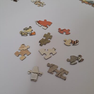 ピースの形や大きさがばらばらで、中には三角形のピースもあり、これまでのジグソーパズルのイメージとはかなり違います。